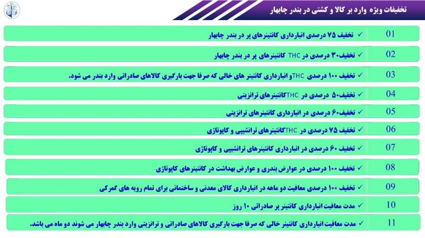 فهرست بروز شده تخفیفات ویژه وارد بر کالا و کشتی در بندر شهید بهشتی چابهار
